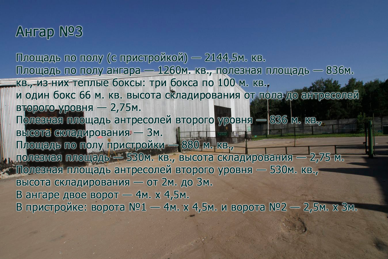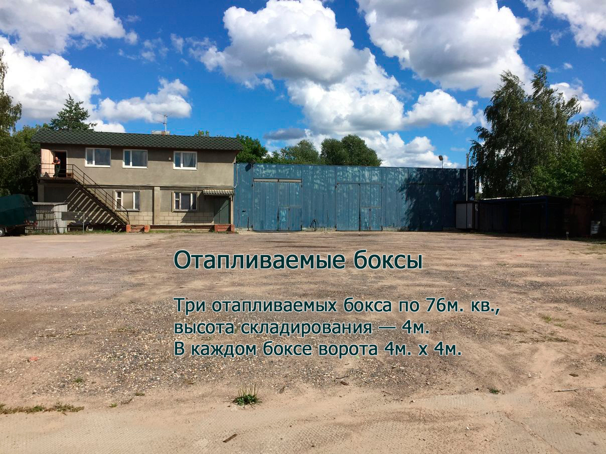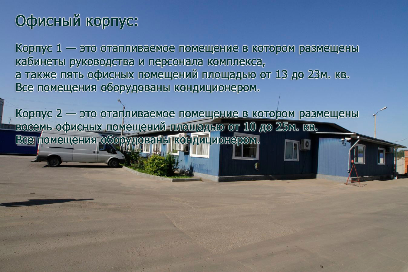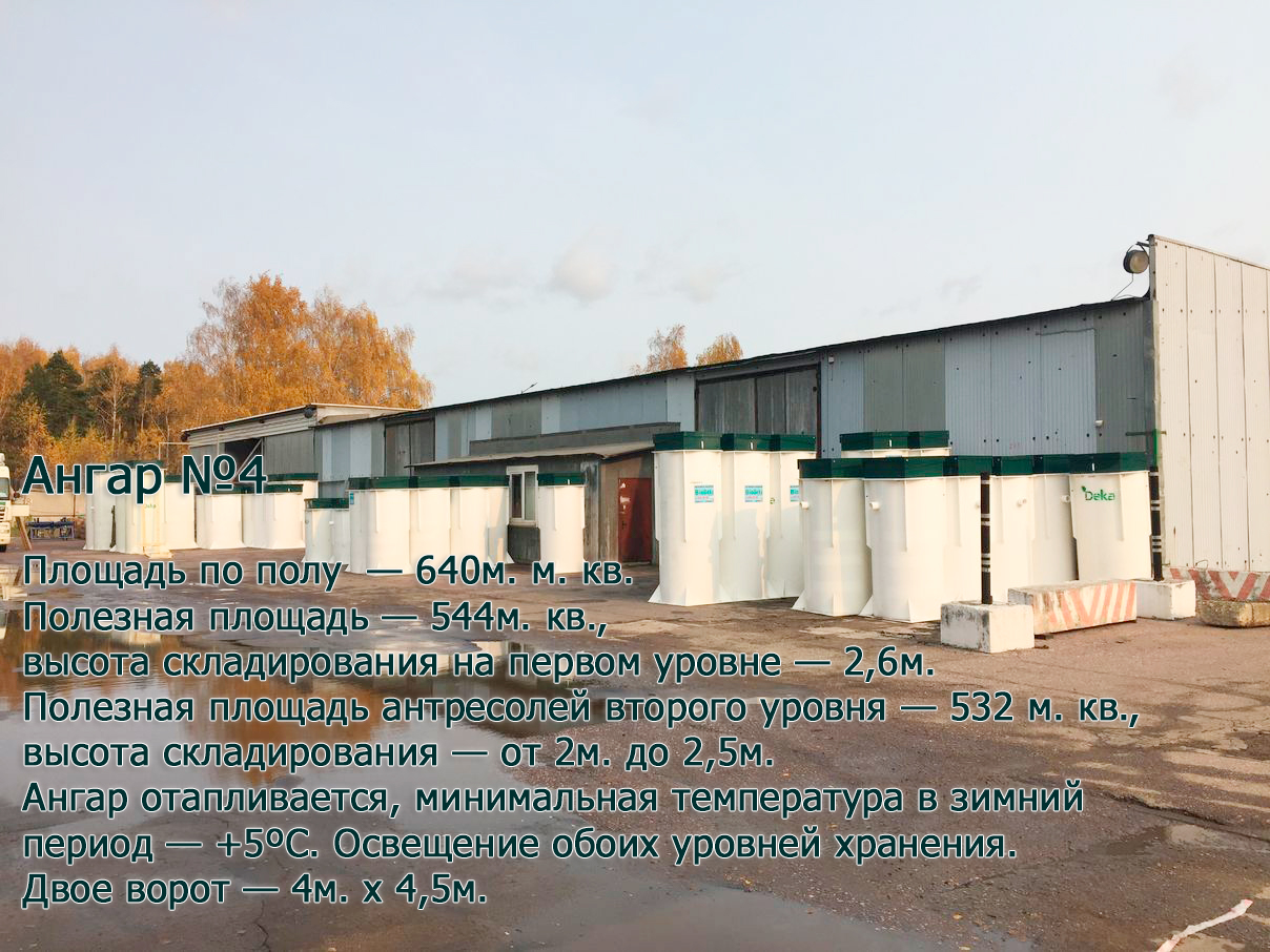 Складской комплекc расположен на территории 2 Га, в него входят: четыре ангара, отапливаемые боксы и офисные корпуса. По всей территории установлена пожарная, охранная сигнализации, ведется видеонаблюдение и круглосуточная охрана.
